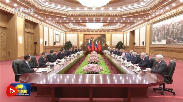 习近平指出,中俄关系是动荡变革的当今世界最稳定、最成熟、最富战略内涵的一组大国关系。持之以恒推动中俄关系高水平发展,符合两国人民根本利益,也是世界和平的稳定源。今年5月,我对俄罗斯进行国事访问并出席纪念苏联伟大卫国战争胜利80周年庆典,下周中方将隆重举行纪念中国人民抗日战争暨世界反法西斯战争胜利80周年活动。中国和苏联分别作为第二次世界大战亚洲和欧洲主战场,为抗击日本军国主义和德国法西斯侵略付出巨大民族牺牲,为赢得二战胜利作出重大贡献。双方要赓续传统友谊,深化战略互信,加强各领域交流合作,携手捍卫两国安全和发展利益,团结全球南方国家,坚持真正的多边主义,推动国际秩序朝着更加公正合理的方向发展。