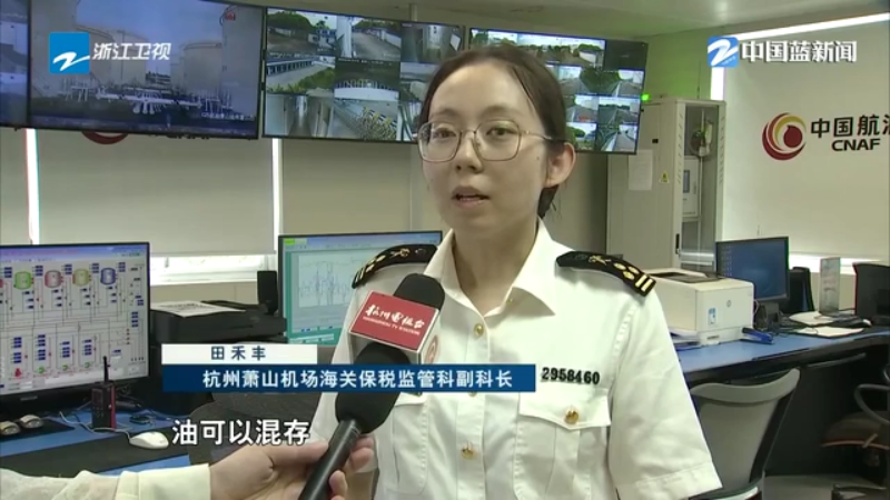 杭州萧山机场海关保税监管科副科长 田禾丰:实行“总量控制”。油可以混存,但保税油的数量和流向在账册里实时记录、全程可溯。同时也简化了保税航油入库、流转、加注的申报手续。