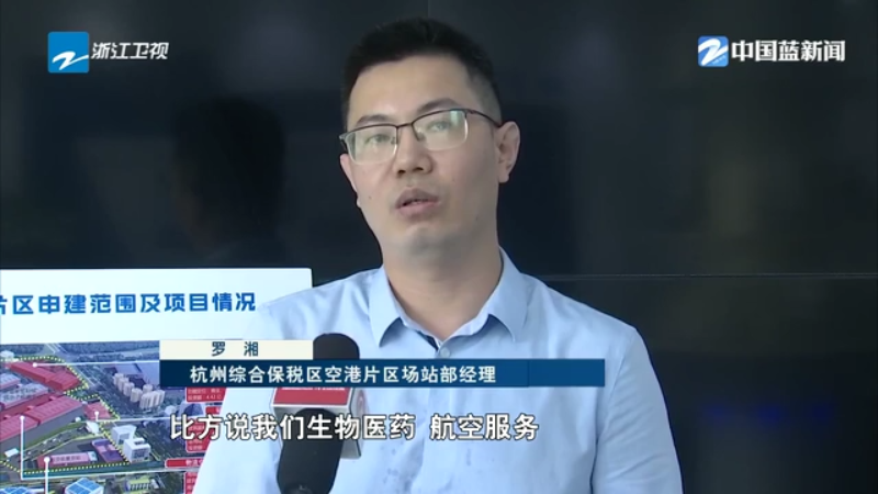 杭州综合保税区空港片区场站部经理 罗 湘:比方说我们生物医药、航空服务都和空港片区的平台是强相关的。空港片区的增设既为整个国家级的物流枢纽作为一个配套,又为整个临空经济的行业也是作为一个互补。