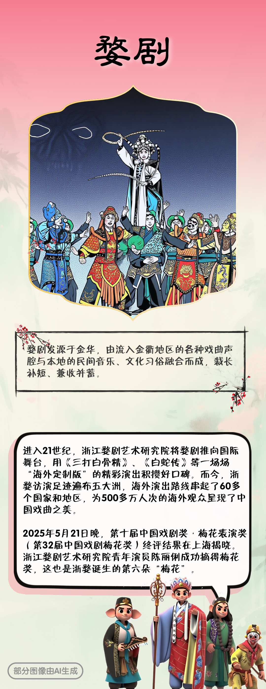 9月5日,第十九届中国戏剧节在杭州开幕,经过20个日夜,9月25日闭幕。 “一部中国戏曲史,半部在浙江”,今年正值浙江文化建设“八项工程”实施二十年。目前,浙江省共有戏曲剧种18个,其中起源于本省的13个,除了越剧、婺剧、绍剧外,还有甬剧、台州乱弹、湖剧等稀有剧种。让我们一起看看浙江戏曲如何与时俱进、守正创新,不断焕发新的活力。