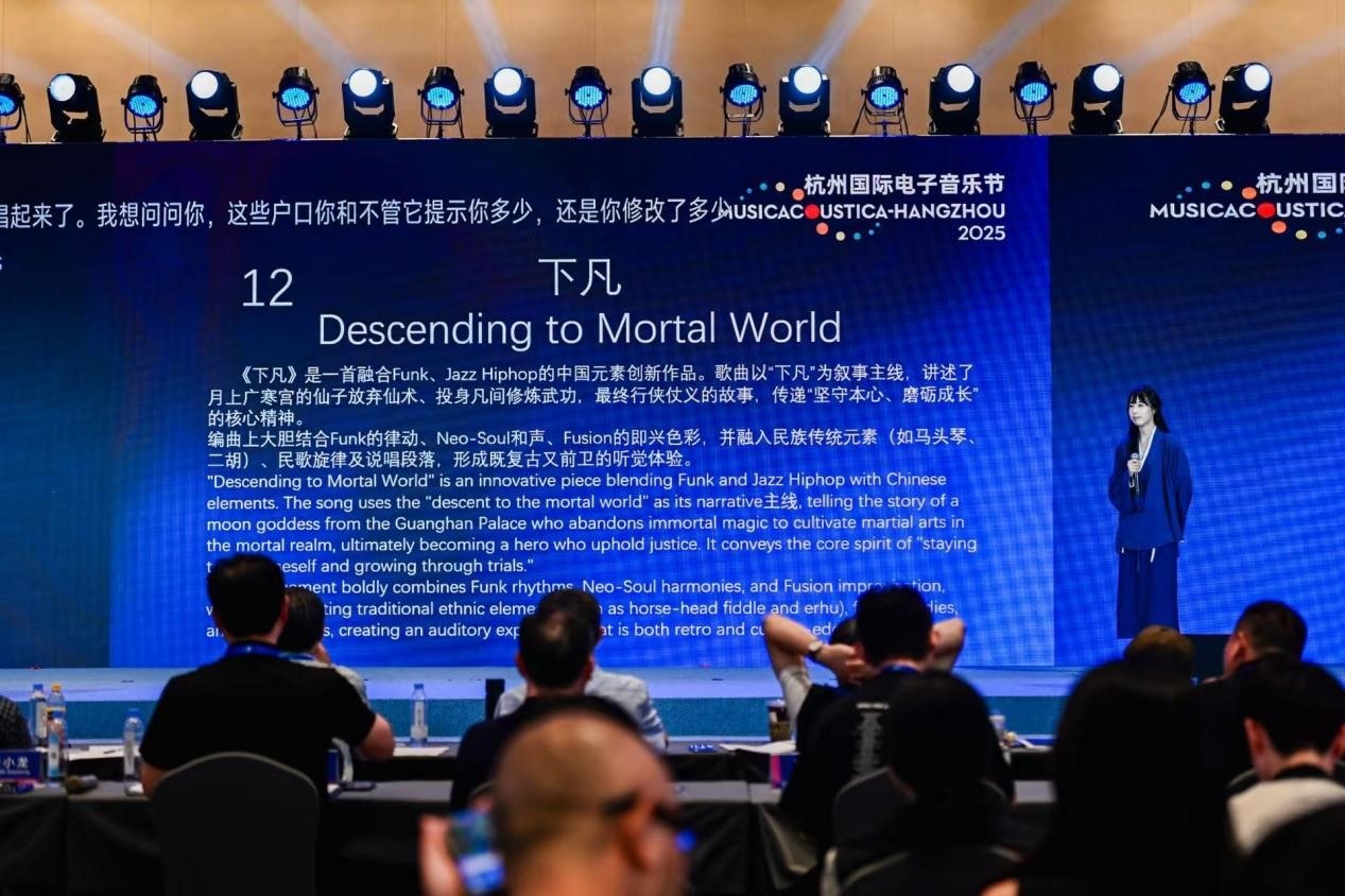 随着最后一个音符归于寂静,掌声如潮水般涌向站在台上的浙江音乐学院大三学生阮天心。这不是一次普通的演出,而是AI歌曲创作大赛的决赛现场,所有参赛作品的创作、制作过程必须有AI参与。她演绎的曲目《下凡》,融合了说唱、流行与民歌等元素,配以马头琴、二胡、古筝等多个乐器,意在营造“耳畔有江湖,心中有日月”的音乐叙事。在她看来,用AI生成乐曲不难,难的是如何抉择,为了一个节拍的精准嵌入,需要与AI模型反复对话。