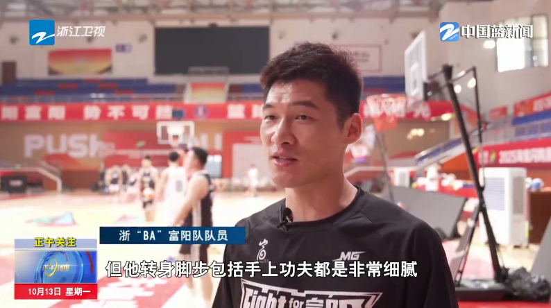 浙“BA”富阳队队员:不要看他这个个子比较高大,但他转身、脚步包括手上功夫都是非常细腻。