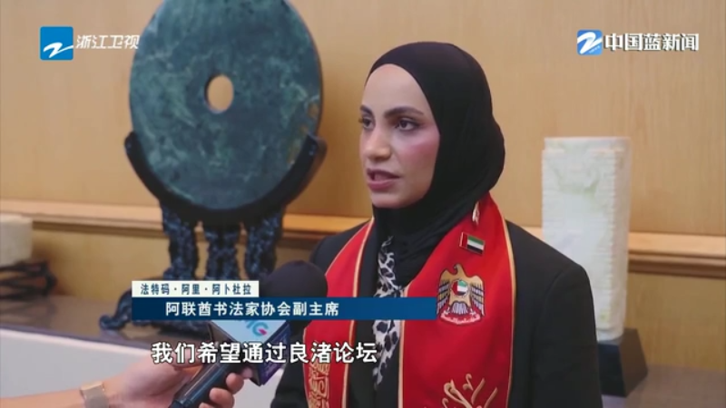 阿联酋书法家协会副主席 法特码·阿里·阿卜杜拉:我们希望通过良渚论坛,搭建中国与阿联酋文化交流的桥梁,交流互信、友好互鉴。