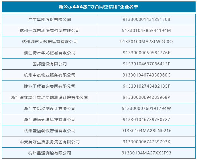 近日,浙江省市场监管局发布2025年度AAA级“守合同重信用”公示企业名单,上城区共有58家企业上榜公示名单,其中新公示企业13家。