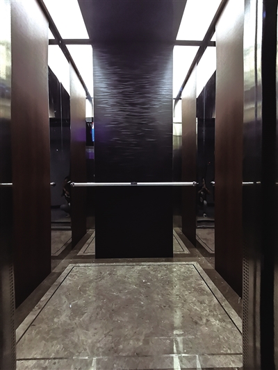 电梯内部采用轻奢风格设计:15.6寸大彩屏实时显示信息,镜面与木饰面巧妙搭配,融入本土文化的“水波纹”元素点缀其间。昔日的轿厢焕然一新,不仅让居民每日进出更方便舒心,更成了社区里一张亮眼的“移动名片”。