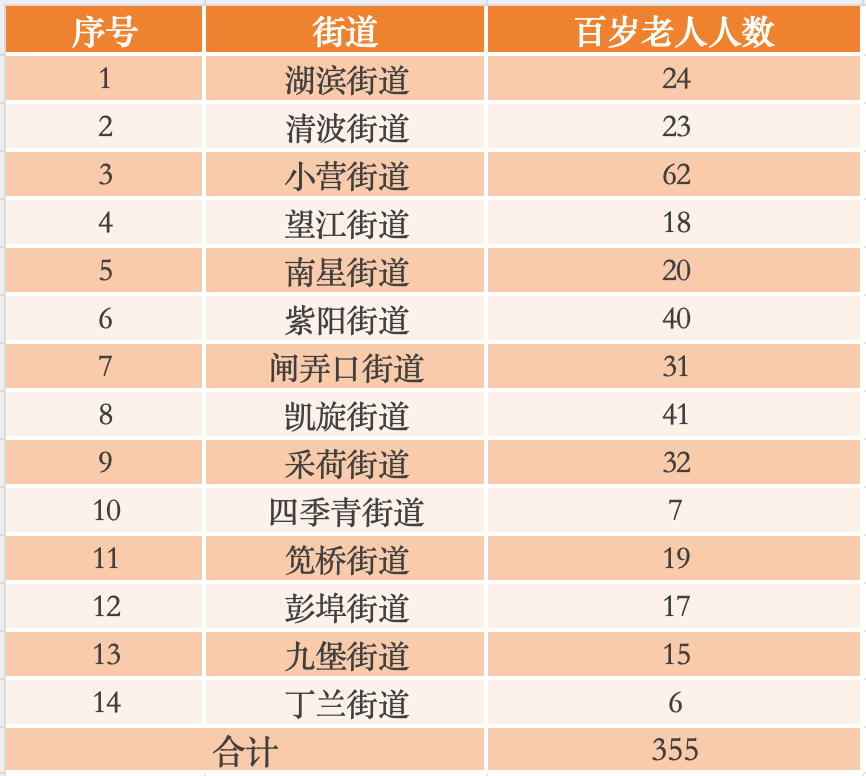 上城百岁老人人口分布