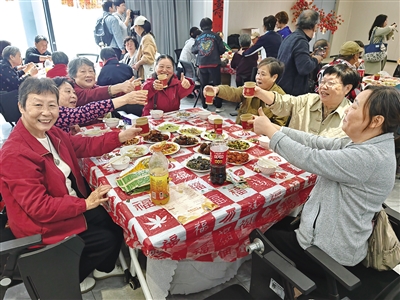 “刚才的表演好看,这桌菜米道也好!”75岁的周和金面上笑容蔼蔼,发自内心地感慨道。一大早,她就和景秀社区的几位邻居姐妹一同来逛市集、看表演,再热热闹闹围坐一桌,谈天吃饭,欢乐过节,“街道每年都邀请我们来玩,把节过得比家里还热闹!明年我还来!”