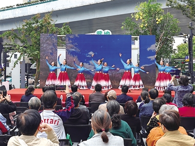 现场,凯之韵艺术团以及社区各文化团队齐聚一堂。气势恢宏的美声合唱、旋律明快的民族舞蹈、弘扬正气的小品……刚落座,老人们就被文艺演出“勾了神”,一旁的公益市集同样广受欢迎,引得大家频频驻足。