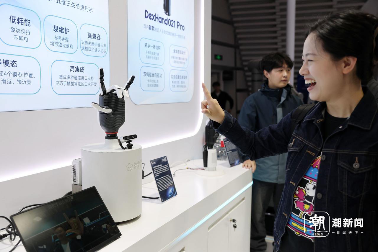 观众与浙江灵巧智能科技有限公司灵巧手互动。