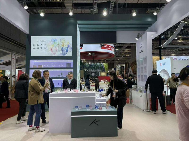 午后时分,在消费品展区5.1馆,妮素展台前人头攒动。灯光映照下,一排排水晶酒杯流光溢彩,引得观众频频驻足拍照。这是日本品牌KAGAMI(可雅美)的产品,6年前,妮素拿下该品牌在中国市场的代理权,自此开启了这段跨越国界的品质之约。
