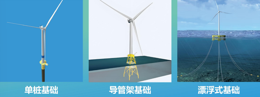 不同类型的风机基础示意图。浙江省海风公司 供图