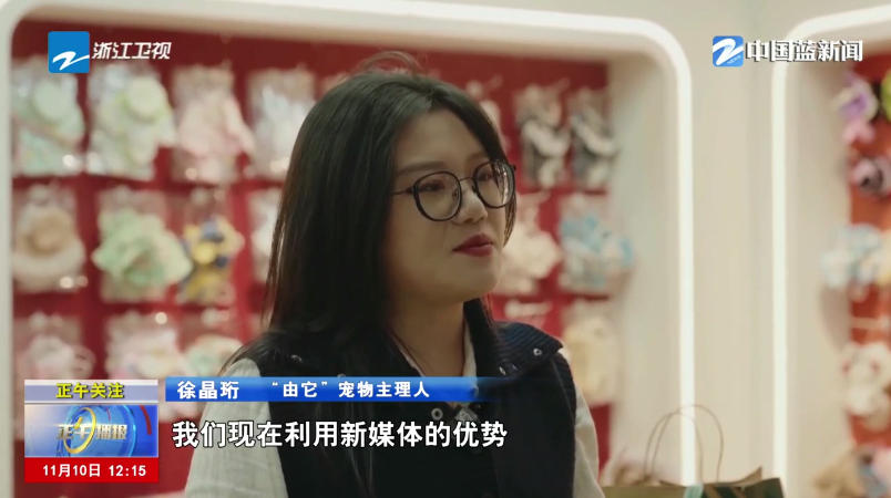 “由它”宠物主理人 徐晶珩:我们现在利用新媒体的优势,去打造我们自己家狗狗的宠物模特IP,还有和一些博主的合作,吸引一些定制化的客户过来。