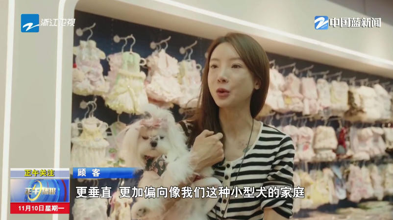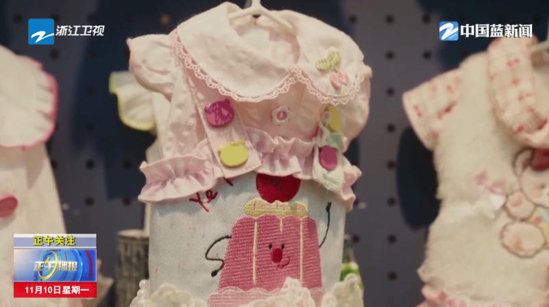 “由它”宠物主理人 徐晶珩:因为我们家一直是做童装的工厂,就捡家里的材料去给它裁几件衣服,刚开始只是做着玩玩,后来挺感兴趣的,家里又有这个资源,就开始做这一行,细分了一个赛道出来。