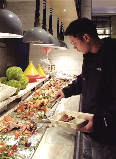 在社交平台上,有不少消费者晒出自己在星级酒店自助餐打包“自助盲盒”的“捡漏”心得,往往花费20元至40元就可以打包大闸蟹、咖喱牛肉、羊排牛排等高端食材制作的食物。这种助餐模式既避免了食物浪费,又让消费者以“一杯奶茶钱”享受大餐,形成双赢。