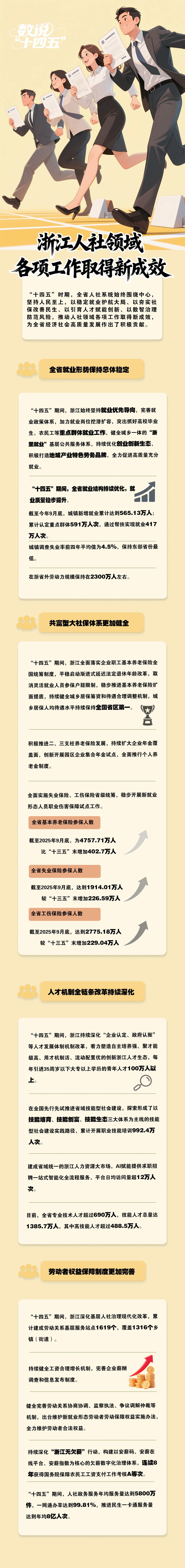 浙江在线讯 11月20日下午,省政府新闻办举行“浙江省高质量完成‘十四五’规划”系列主题第七场新闻发布会,介绍“十四五”时期浙江社会民生事业发展成就。“十四五”期间,浙江社会民生事业成果丰硕,成绩可圈可点。一起从民政、人社、卫健、医保四个维度看浙江这五年来取得的累累硕果。