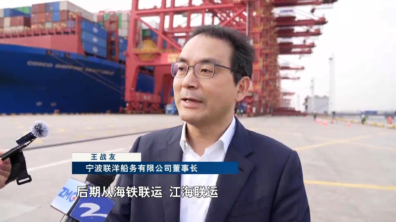 宁波联洋船务有限公司董事长 王战友:心情非常激动。宁波多少港一直在大力建设当中,前期是码头的建设,后期海铁联运、江海联运、海河联运等多种运输模式,把很多外贸企业的货集中出口。