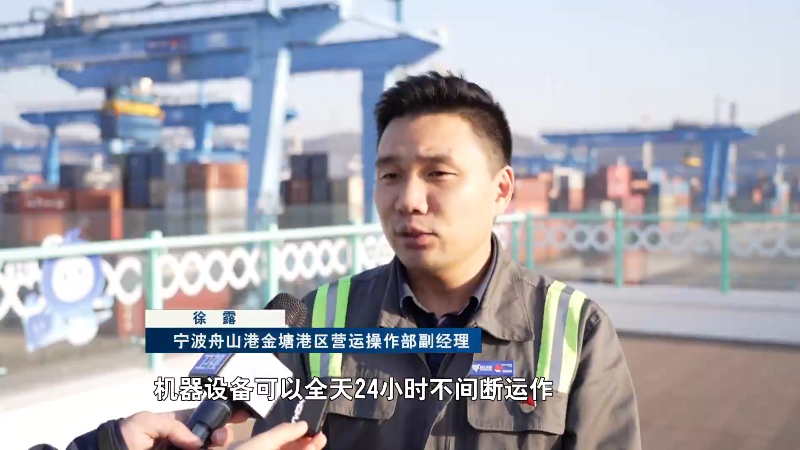 宁波舟山港金塘港区营运操作部副经理 徐 露:机器设备可以全天24小时不间断的运作,为了迎接大流量奠定了一个坚实的基础。