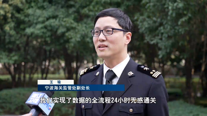 宁波海关监管处副处长 王瑜:通过与港口的信息化的交互,我们实现了数据的全流程24小时无感通关,助力我们港口物畅其流,加速港口的吞吐量的跃升。