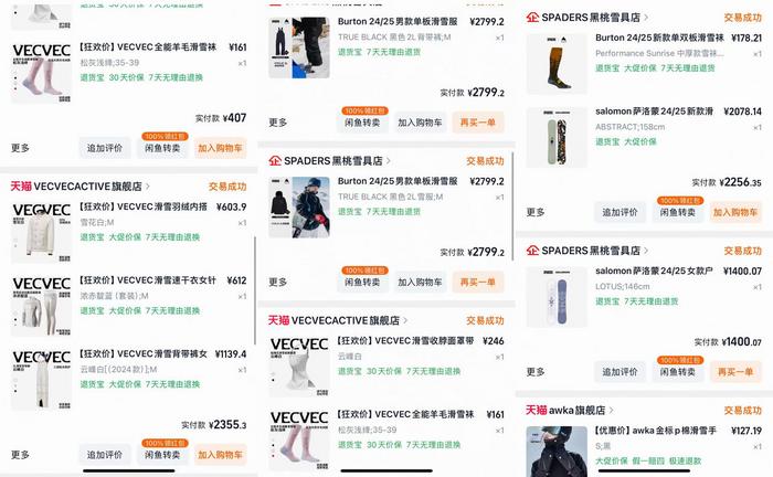 这种“愿意付费”的趋势,在陈女士身上同样可见。她不仅报名了系统进阶课程,近些年还陆续购置了雪板、雪服、护具等全套专业装备,仅在刚刚过去的“双十一”大促中,就花费了近万元。