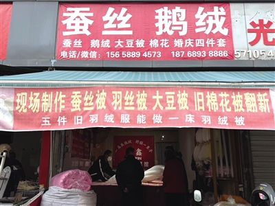 “前几年大家追捧成品羽绒被,最近两年旧羽绒服翻新的需求越来越大,一是能变废为宝不浪费,二是手工定制能选自己喜欢的被壳样式,还能把控品质。”高万里笑着说,不少顾客翻新时会特意选花纹精致的被壳,有的还会和其他品类被子搭配购买,满足不同场景的保暖需求。