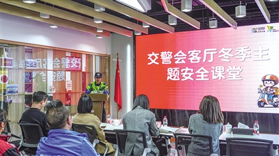 “小哥学堂”冬季主题课堂正式开讲,湖滨交警中队的警官为骑手们带来了一场简练实用的“冬季主题安全课堂”,聚焦雪天防滑、救援方式等季节性安全问题,筑牢冬日骑行的“安全防线”。