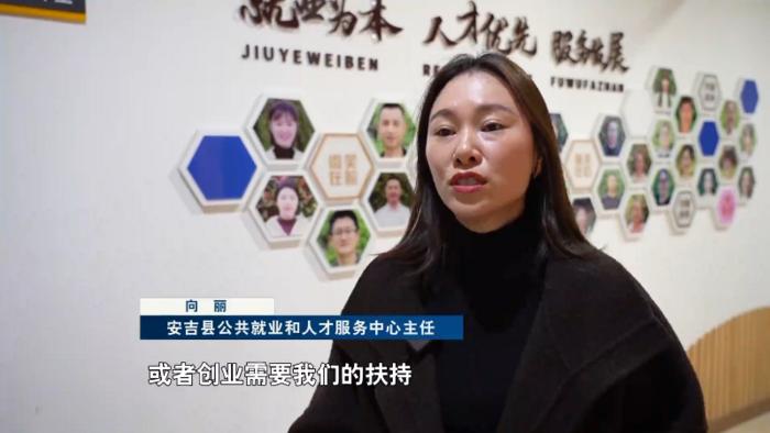安吉县公共就业和人才服务中心主任 向丽:找不到工作,或者创业需要我们的扶持,我们也可以马上跟上,就业服务站可以实现我们15分钟的就业服务圈。