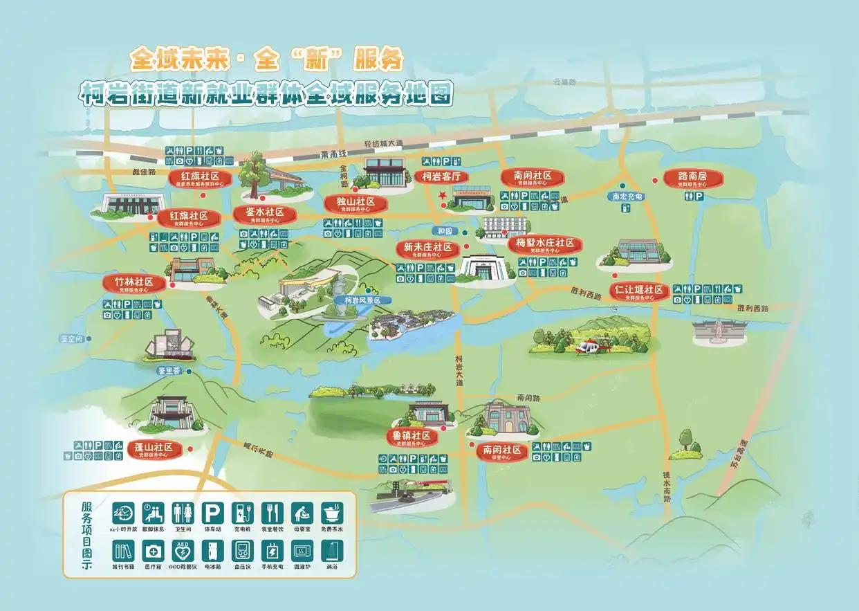 绍兴柯岩街道针对快递小哥、外卖小哥、网约车司机等新就业群体的吃饭、充电、进小区等一系列痛点,“画出”了一幅《新就业群体全域服务手绘地图》,解决他们实际困难。这张手绘地图主要依托街道10个社区的党群服务中心、邻里中心、居家养老服务照料中心等场所,打造暖“新”驿站,为新就业群体提供包括暖“新”充电、暖“新”午餐、暖“新”修整、暖“新”保护等10项服务。