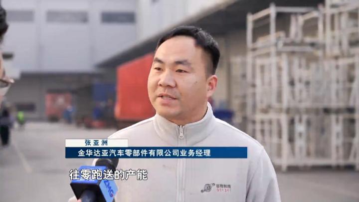 金华达亚汽车零部件有限公司业务经理 张亚洲:我们基本上是24小时不间断,往零跑送的产能,相当于720台新能源车。