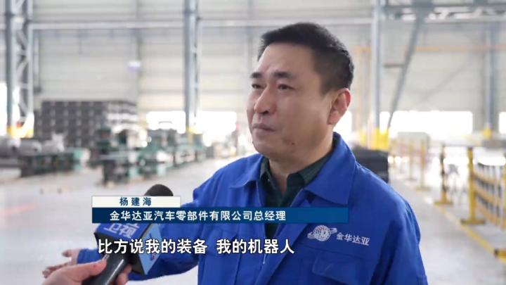 金华达亚汽车零部件有限公司总经理 杨建海:汽车行业它会带动很多产业,比方说我的装备、我的机器人,然后我的零部件、前面的原材料,它是一个全产业链的过程。