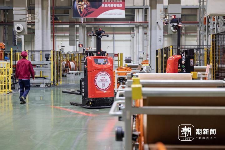 在中策橡胶临江制造工厂,智能物流小车在车间里自动搬运原材料。记者 曹坚 摄