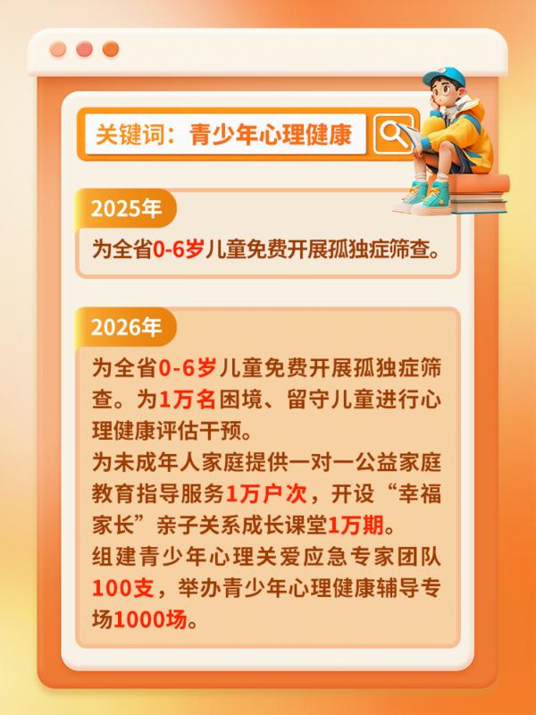 近年来,加强青少年心理健康教育工作已成为社会共识。“孤独症筛查”已连续三年列入浙江十方面民生实事,2026年在原先基础上,增加了对1万名困境、留守儿童进行心理健康评估干预。