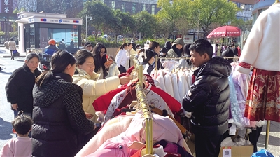 新年新气象,这几天这里的散客越来越多,又逢周末,不少家长带着孩子来这里挑选新衣服。