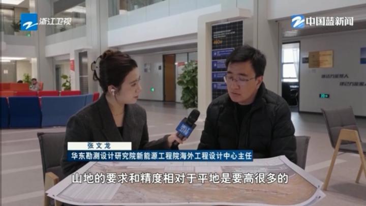 华东勘测设计研究院新能源工程院海外工程设计中心主任 张文龙:山地的要求和精度相对于平地是要高很多的,要求我们的设计输入要足够精确。要借助于相应专业化的软件,做更详细的一些预判。