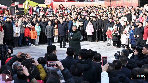 央视新闻讯 中华民族传统节日春节即将到来之际,中共中央总书记、国家主席、中央军委主席习近平在北京考察并看望慰问基层干部群众,向全国各族人民和香港同胞、澳门同胞、台湾同胞、海外侨胞拜年!