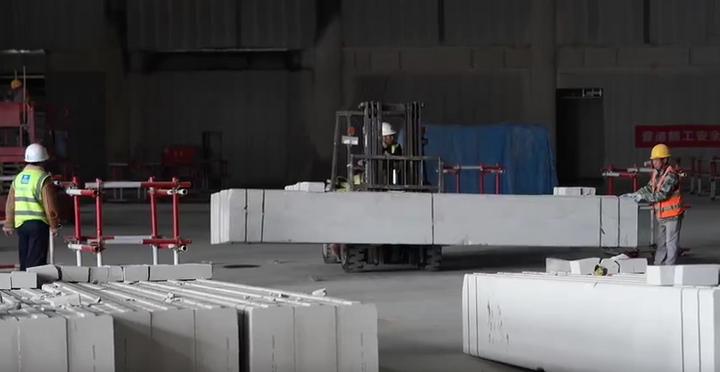 9000多平方米的展厅里,叉车轻捷穿梭,工人有序忙碌,网架安装、机电管线铺设等工作有条不紊地展开。为了让工友们安心上岗,建设方特意请来中医院的医生,为返岗人员做健康检查,细致又暖心。