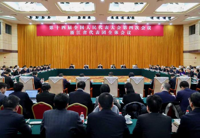 5日下午,浙江代表团举行全体会议,审议李强总理代表国务院所作的政府工作报告。