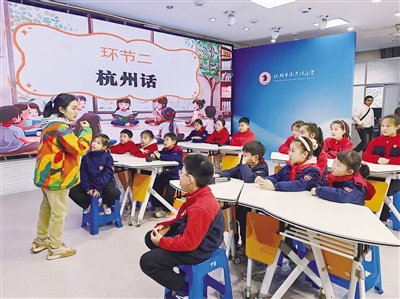 “今天的杭州话课好好玩!跟着老师学念童谣、说杭州话,还听了老杭州的小故事,等回家我就和爷爷奶奶唠几句去!”学生张晨晋兴奋道,一堂课下来,他已能像模像样地说上几句,迫不及待想等放学回家展示自己的学习成果。