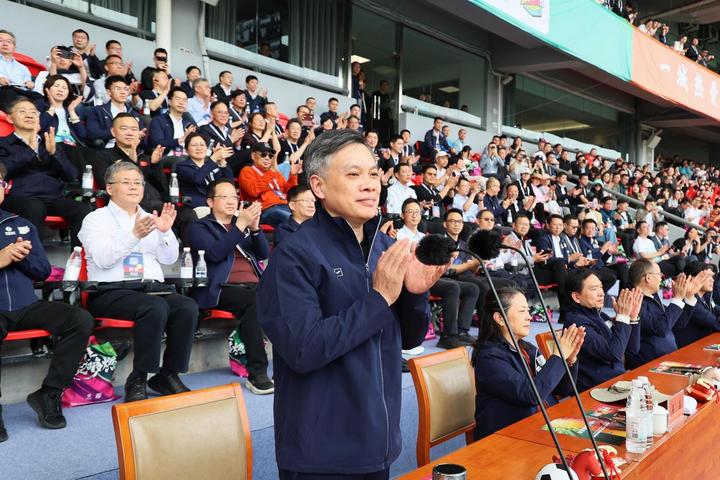 4月6日,2026年吴越杯浙江省城市足球联赛在嘉兴开幕。省委副书记、省长刘捷宣布开幕。潮新闻记者 陆乐 摄